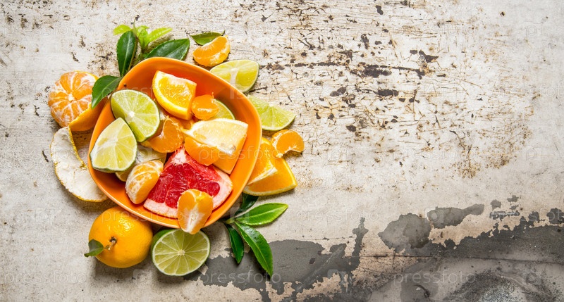 Ломтики цитрусовых - грейпфрут, апельсин, мандарин, лимон, лайм