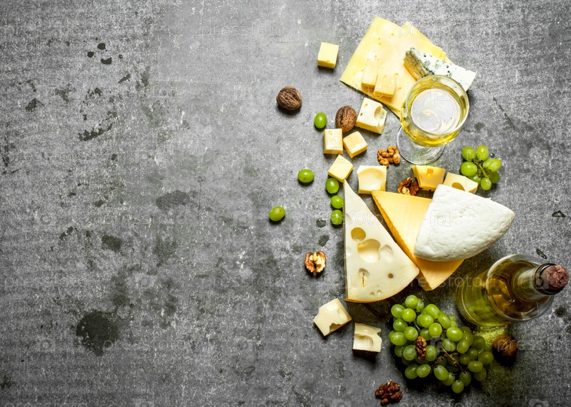 Свежий сыр с виноградом и белым вином