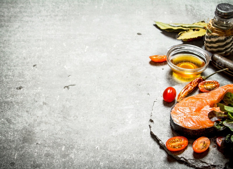 Кусок сырой форели и томаты