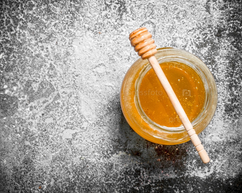 Свежий мед в банке с деревянной ложкой