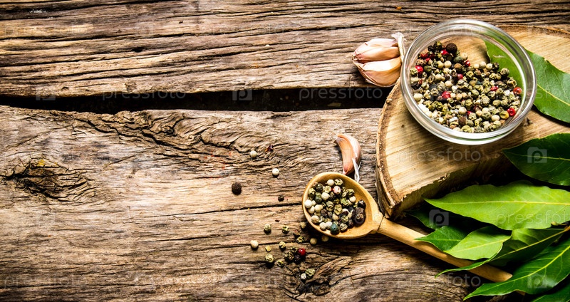Черный перец с листьями залива