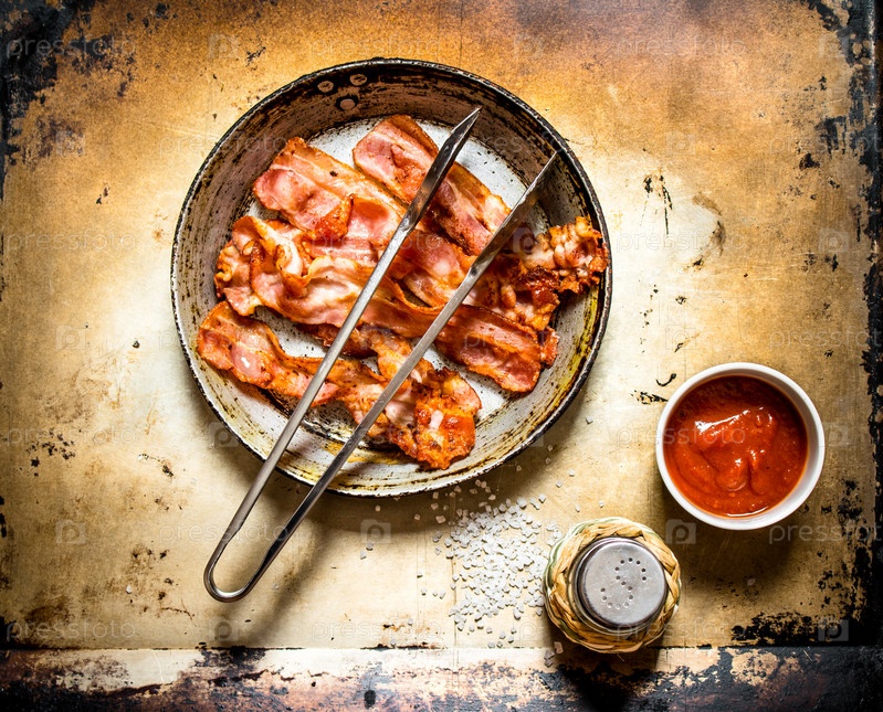 Жареный бекон с соусом и солью