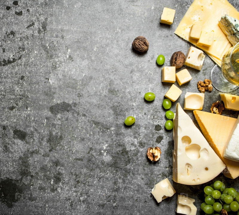 Свежий сыр с виноградом и белым вином