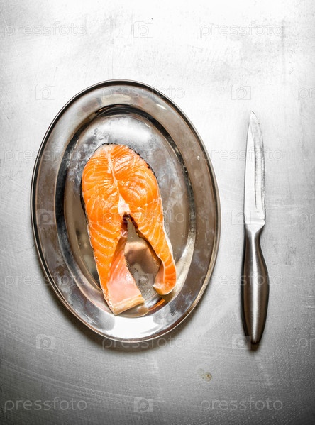 Кусок сырого лосося на подносе