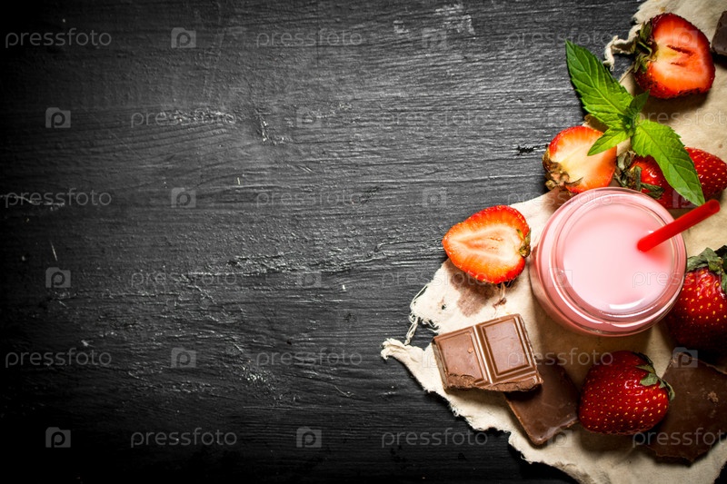 Клубничный коктейль с шоколадом и мятой