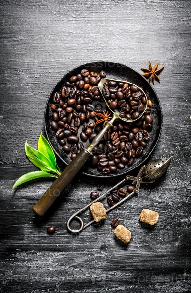 Жареные кофейные бобы в сковороде