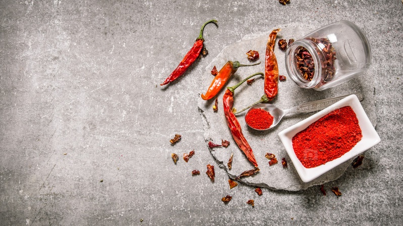 Молотый красный перец чили в миске
