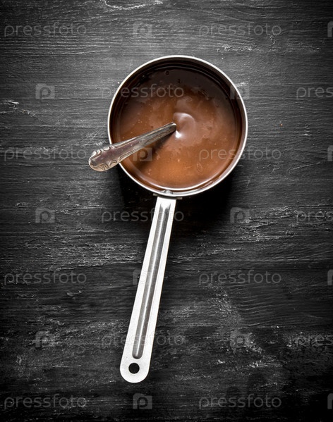 Свежее шоколадное масло в маленькой кастрюле