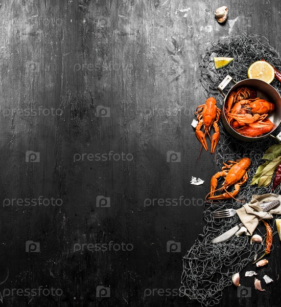 Вареные раки для рыболовной сети со специями и травами