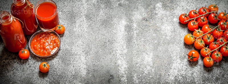 Свежие помидоры, томатный сок и соус