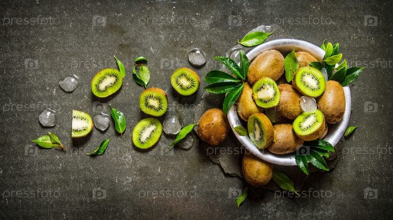 Свежие киви с листьями и лед