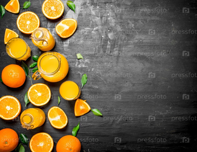 Свежий сок из апельсинов с листьями