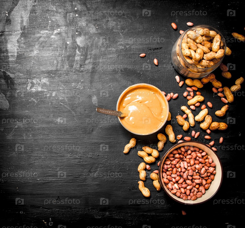 Арахисовое масло с орехами в миске