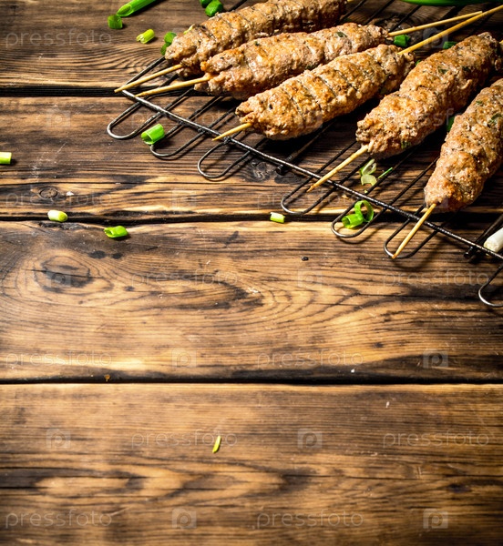 Кебаб на гриле с зеленым луком