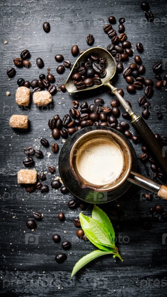 Кофейник с кофе и тростниковый сахар
