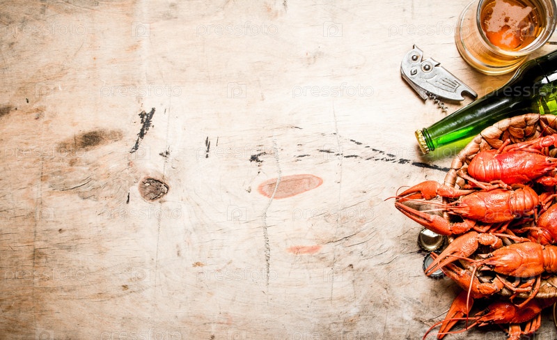 Свежие вареные раки с пивом
