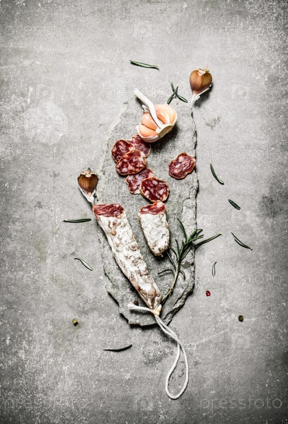 Ломтики салями с розмарином и специями