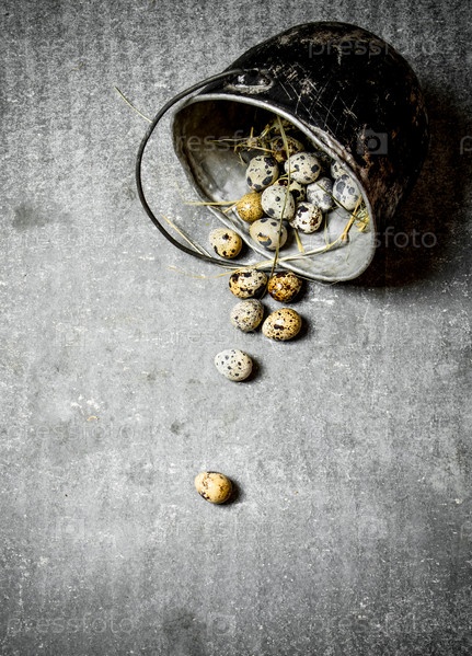 Перепелиные яйца с сеном в старом горшке