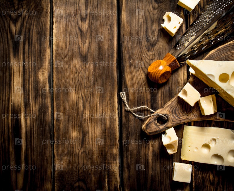 Кусочки сыра с теркой на доске