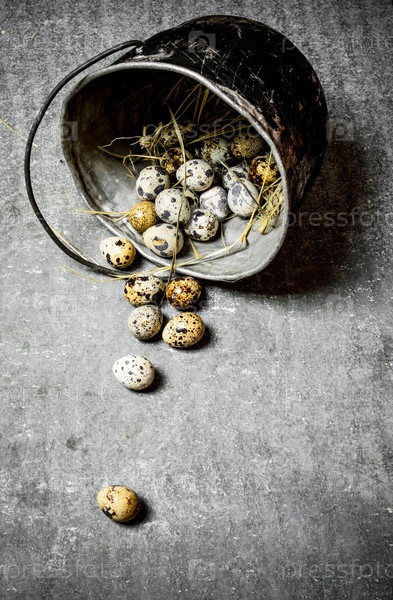 Перепелиные яйца с сеном в старом горшке