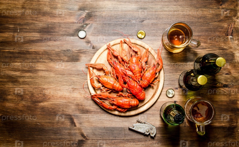 Свежие вареные раки с пивом