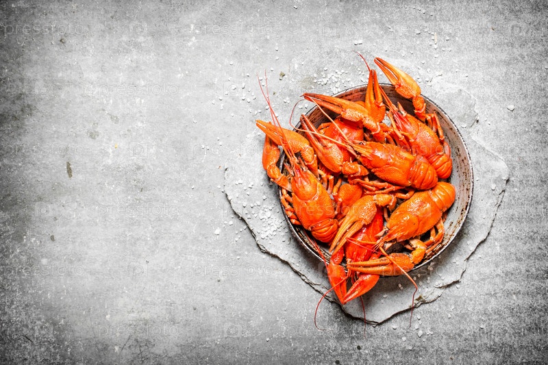 Вареные раки в старой кастрюле