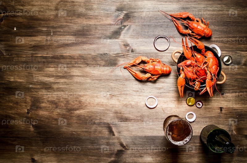 Свежие вареные раки с пивом