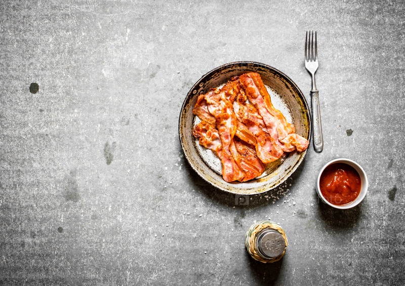 Жареный бекон с томатным соусом и солью