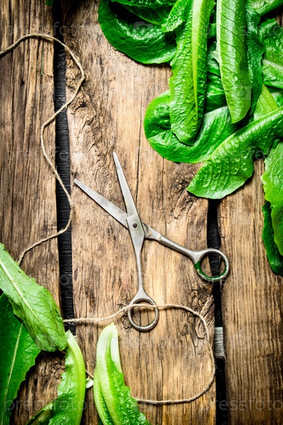 Свежая зелень со старыми ножницами