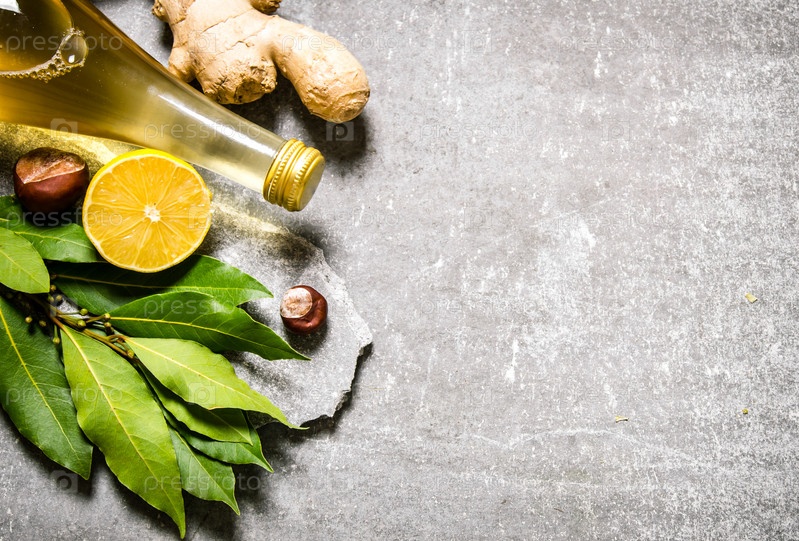 Специи и травы на каменной подставке