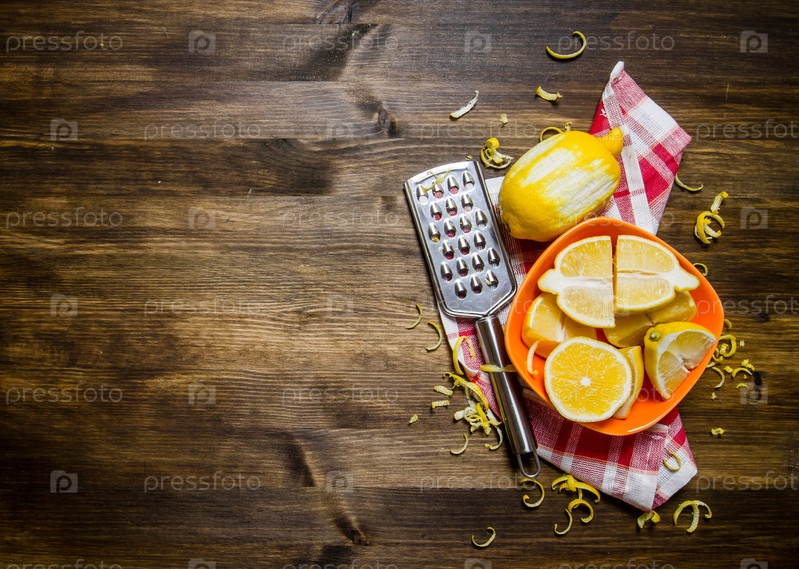 Свежие лимоны в миске с цедрой и терка