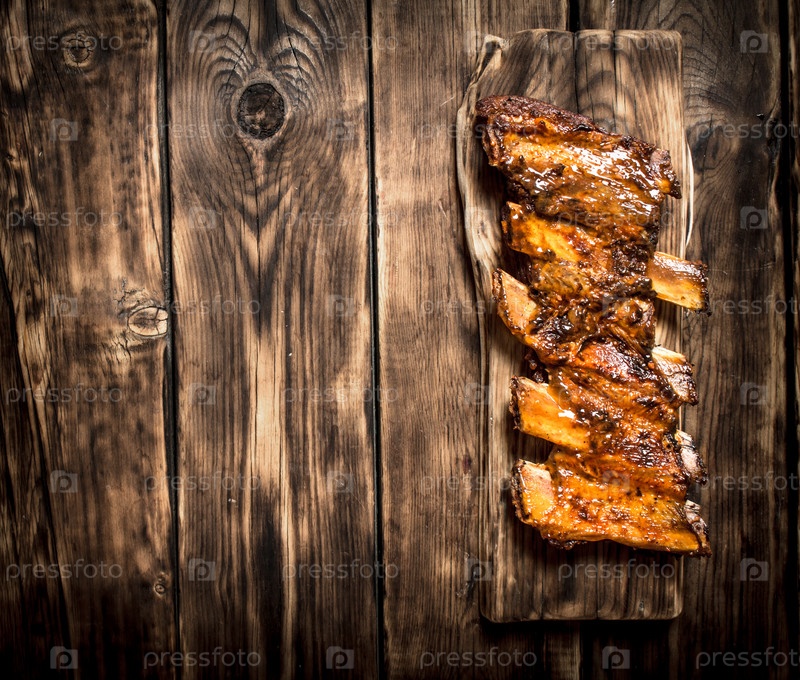 Копченые ребрышки на гриле на старой доске