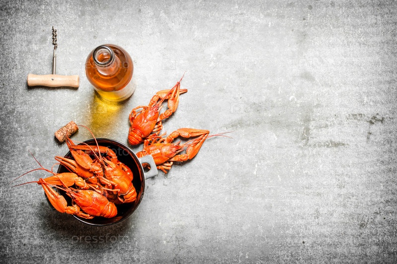 Вареные раки с бутылкой белого вина