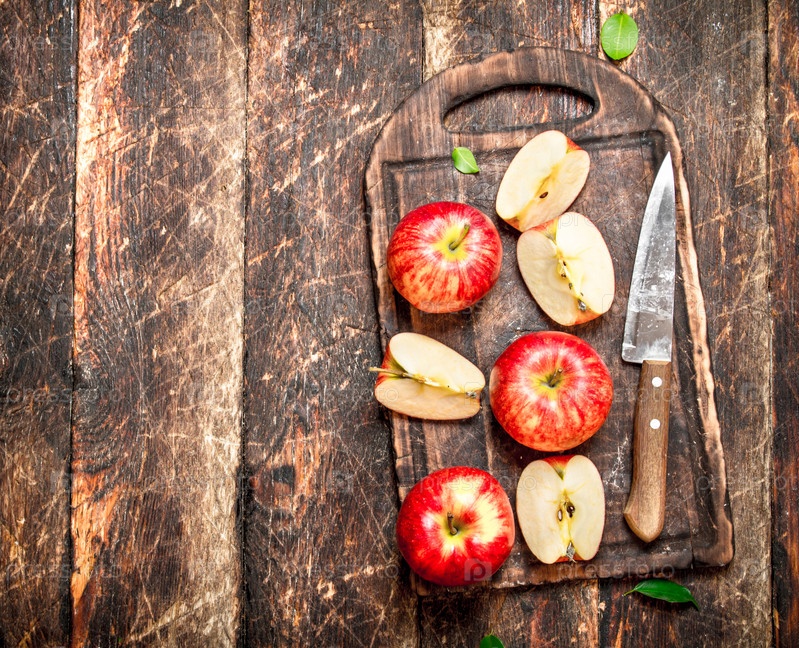 Свежие яблоки с ножом