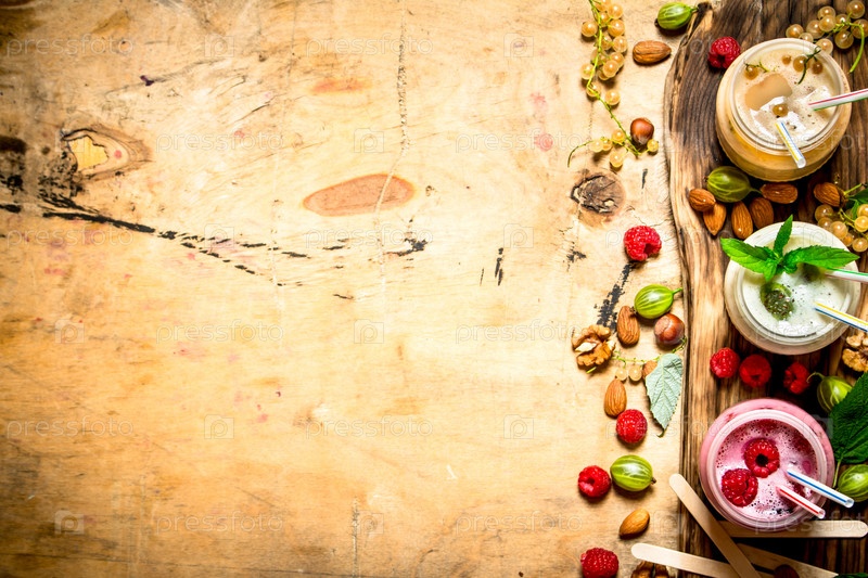 Ягодные коктейли с различными ягодами и орехами