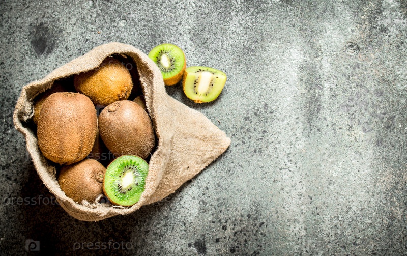 Свежие киви в старом мешке