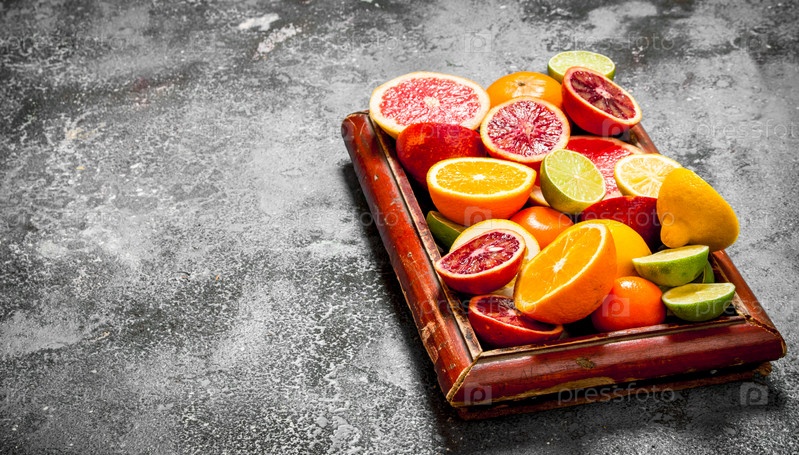 Цитрусовые в старом подносе