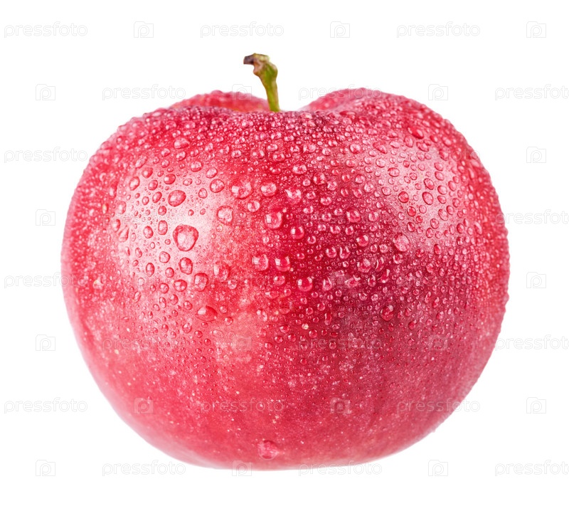 Мокрое красное яблоко, изолированное на белом фоне