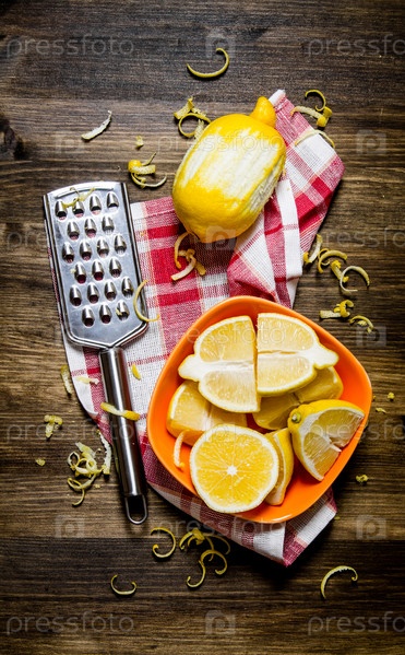 Свежие лимоны в миске с цедрой и терка