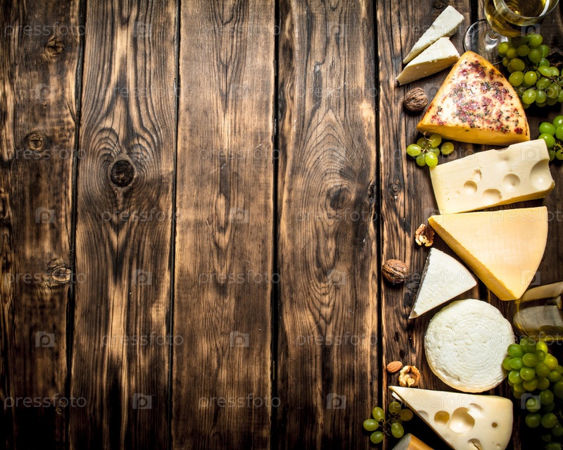Различные сыры с орехами и белым виноградом
