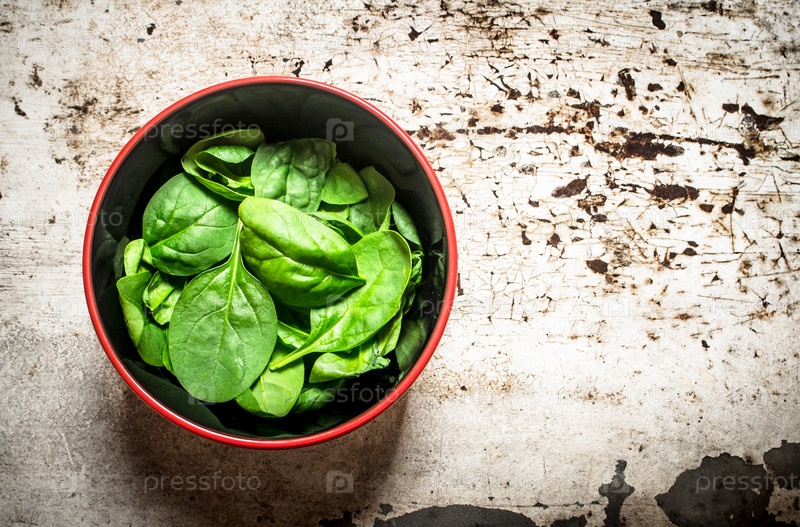 Листья шпината в миске