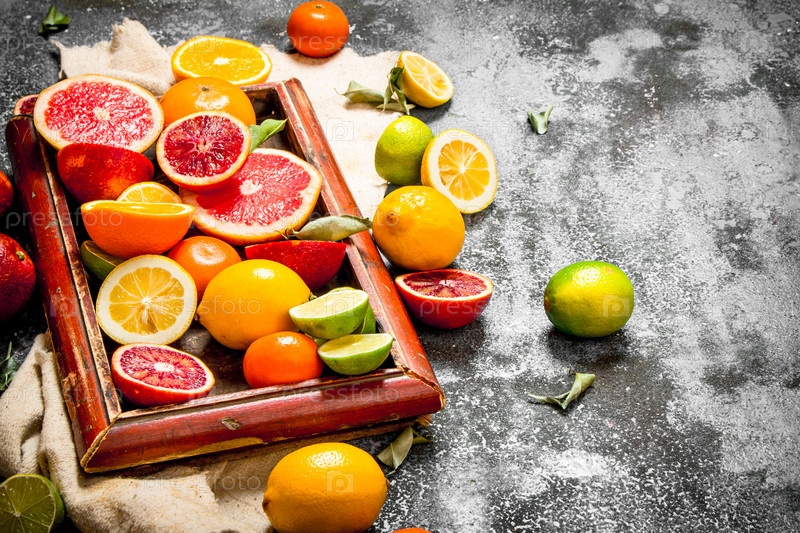 Цитрусовые в старом подносе