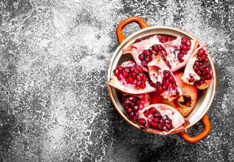 Кусочки свежего граната в миске