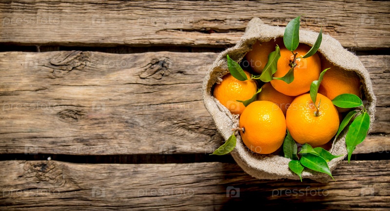 Свежие мандарины в старом мешке