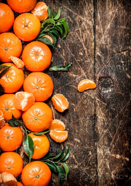 Свежие мандарины с зелеными листьями