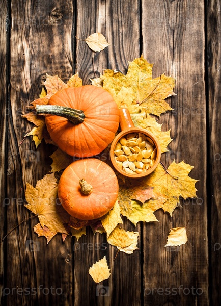 Семена тыквы с листьями клена