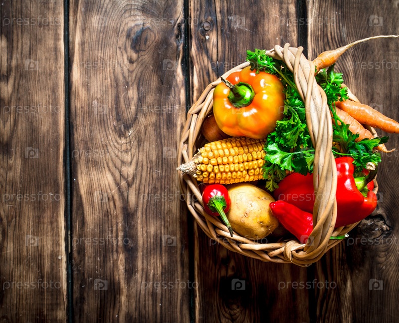 Свежие овощи в старой корзине