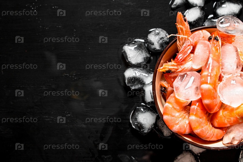 Креветки со льдом в миске
