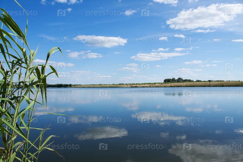 Озеро под голубым облачнм небом