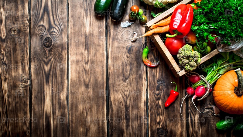 Здоровые овощи в старой коробке